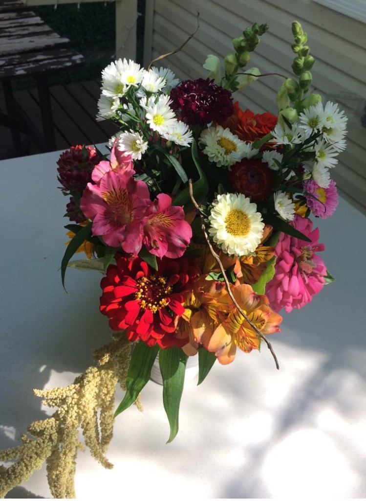 One of my oldest friends called and left messages twice and sent a bouquet of flowers in the fanciest box I’ve ever seen. She’d had the florist create a bouquet of flowers native to my state.