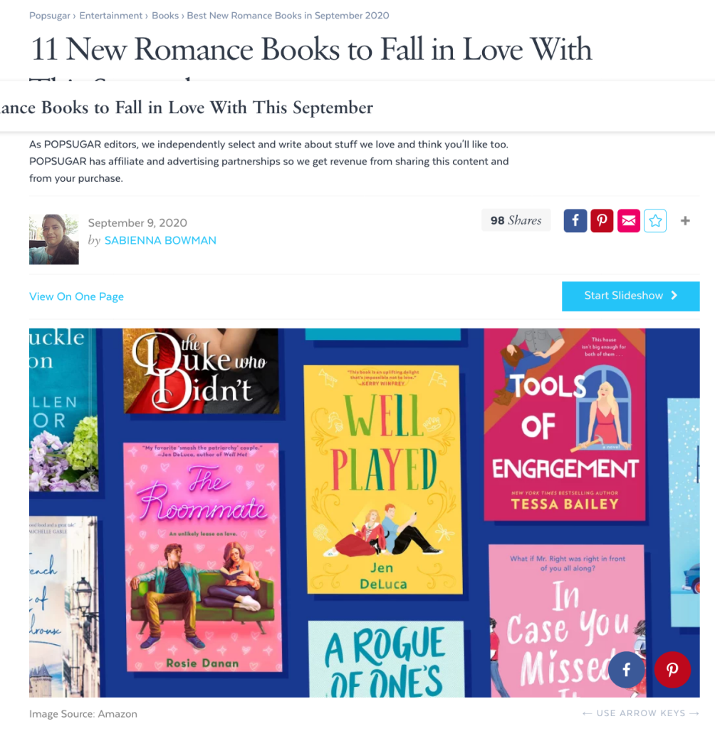 September 9, 2020. PopSugar names The Holiday Detour as #6 of 11 romance novels to read in September.